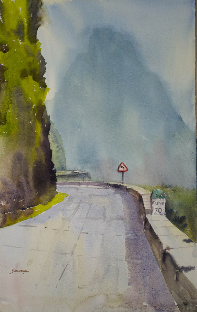Kolthare to Pune, Watercolour on Paper, (19" x 12.5") |
